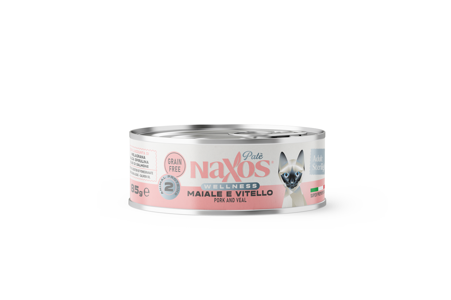NAXOS CAT STERILIZED Puszka dla kotów sterylizowanych o smaku wieprzowiny i cielęciny 85g • Kod: 38049 • EAN: 8025844314733 • Kategoria: Koty. Skompletuj zamówienie