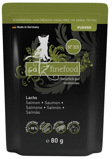 Catz Finefood Purrrr N.105 Łosoś saszetka 80g • Kod: mls-13663 • EAN: 4260379441040 • Kategoria: Mokra karma dla kotów Catz Finefood. Zamów z dostawą kuriera