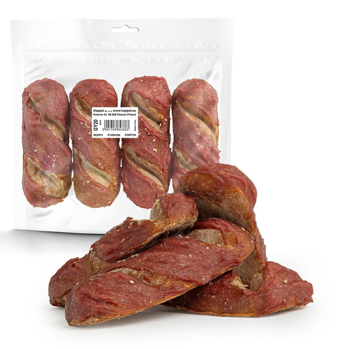 Bagietka z kaczką – 4 sztukiBagietka z kaczką z serii Happ Bakery to doskonała przekąska dla psów, która łączy w sobie smak i wartości odżywcze. W opakowaniu znajdują się cztery sztuki, które zadowolą każdego czworonożnego smakosza.KorzyściWysoka zawartość…