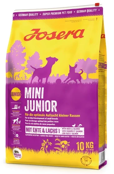 Josera Mini Junior Duck & Salmon 3kgKarma stworzona specjalnie dla szczeniąt małych ras, idealna od 6. tygodnia życia. Dzięki małym, chrupiącym granulkom, jest łatwa do spożycia przez młode psy w fazie wzrostu.Receptura oparta na soczystej kacze i łososiu…