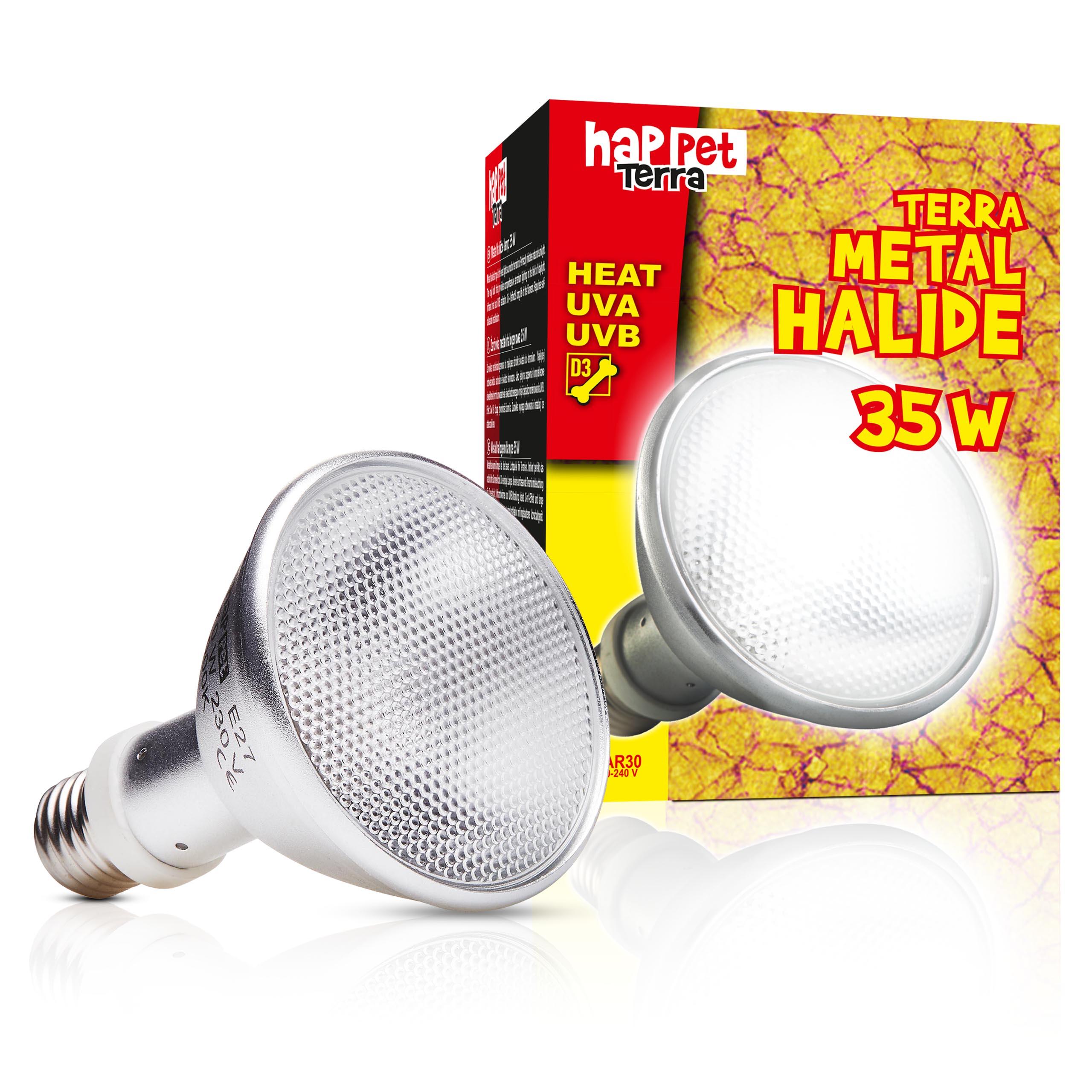 Terra Metahalogen UVB 35W PAR30 Żarówka metahalogenowa o mocy 35W to doskonałe rozwiązanie dla terrariów, zapewniające pełne spektrum promieniowania. Dzięki zastosowaniu tej żarówki, uzyskasz intensywne światło widzialne, ciepło oraz promieniowanie UVA…