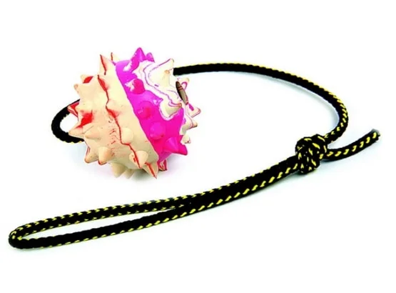 Dingo Zabawka dla psa - Piłka duża gumowa z kolcami na sznurze 60cm • Kod: mls-20801 • EAN: 5904760173231 • Kategoria: Wytrzymałe i edukacyjne zabawki dla psów. Zamów teraz online