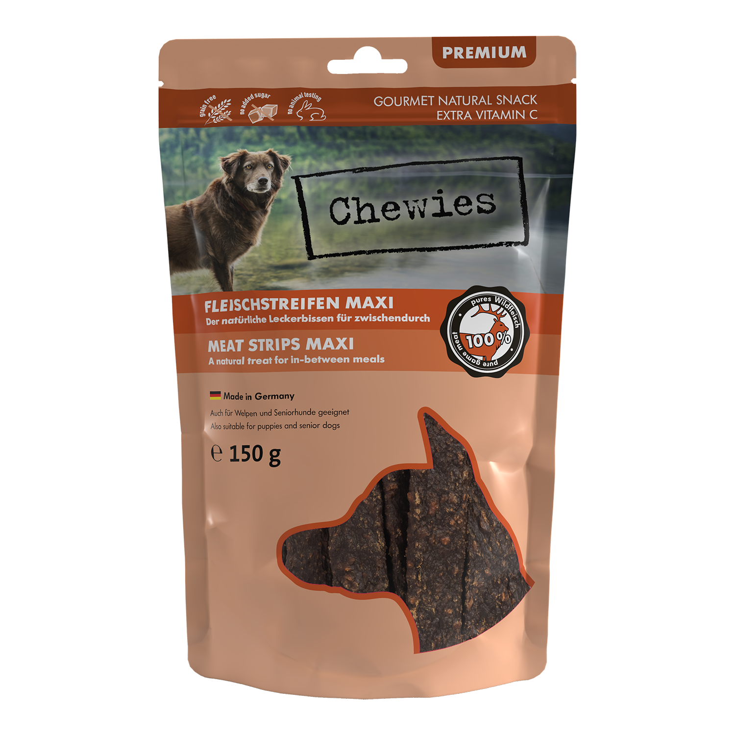 Chewies Paski mięsne Dziczyzna to delikatnie suszone mięso z dodatkiem witaminy C. Dzięki specjalnej produkcji wysokiej jakości składniki odżywcze mięsa są prawie całkowicie zachowane. Paski mięsne do żucia to pyszna i zdrowa nagroda między posiłkami.…