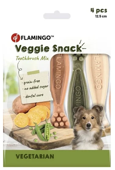Flamingo Veggie gryzak szczoteczka 12,5cm/4szt • Kod: mls-17586 • EAN: 5400585083606 • Kategoria: Kości i gryzaki dla Psów. Zamów teraz online