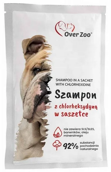Over Zoo Szampon z chlorheksydyną dla psów i korów saszetka 20ml • Kod: mls-16256 • EAN: 5903293701751 • Kategoria: Szampony i odżywki dla psów – pielęgnacja sierści. Dodaj do koszyka i sprawdź rabat