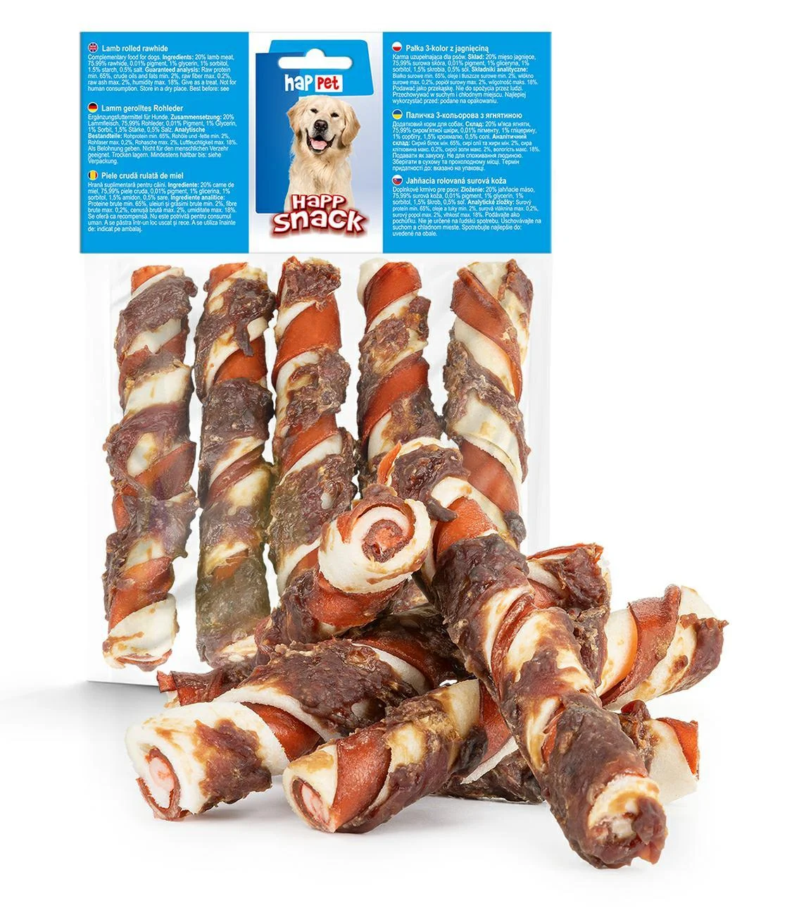GP45 Pałka 3-kolor z jagnięciną 5 szt • Kod: GP45 • EAN: 5907708647757 • Kategoria: Snaki - HAPP Snack. Zamów natychmiast
