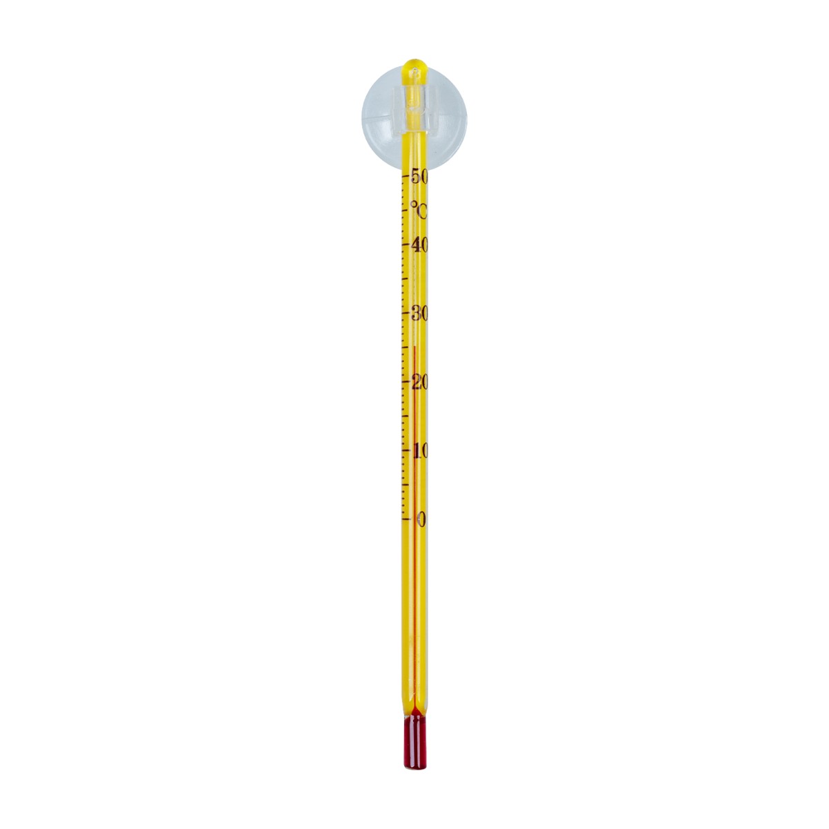 Termometr ma długość 15 cm i wyraźną skalę od 0 do 50°C, co umożliwia łatwy i wygodny odczyt temperatury. Czytelna podziałka pozwala na szybkie sprawdzenie warunków w akwarium, co jest kluczowe dla zdrowia ryb i roślin.