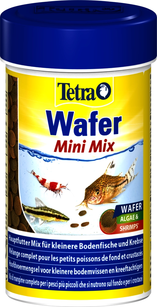 Tetra Wafer Mini Mix 100ml to kompletny pokarm przeznaczony dla ryb dennych oraz skorupiaków. Dzięki starannie dobranym składnikom, dostarcza niezbędnych mikroelementów i witamin, które wspierają zdrowie ryb. Wafelki w kolorze zielonym, bogate w glony Spirulina, idealnie nadają się dla ryb roślinożernych. Z kolei brązowe wafelki zawierają dużą ilość białka zwierzęcego, co czyni je doskonałym wyborem dla ryb mięsożernych.