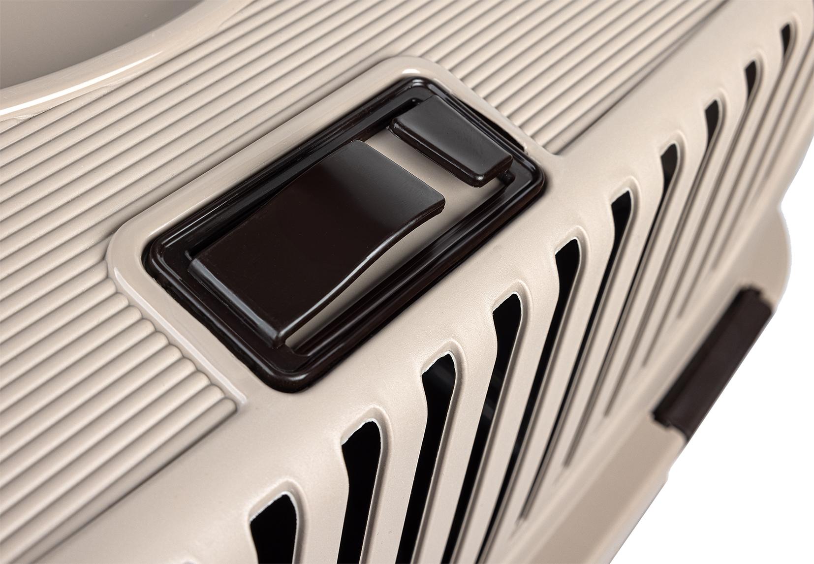 Specjalne otwory wentylacyjne oraz krata gwarantują odpowiednią cyrkulację powietrza, co jest istotne podczas podróży. Transporter jest łatwy w obsłudze - przednia krata jest całkowicie demontowalna, co ułatwia dostęp do wnętrza. Dodatkowo, górna część transportera może być odpięta w razie potrzeby.