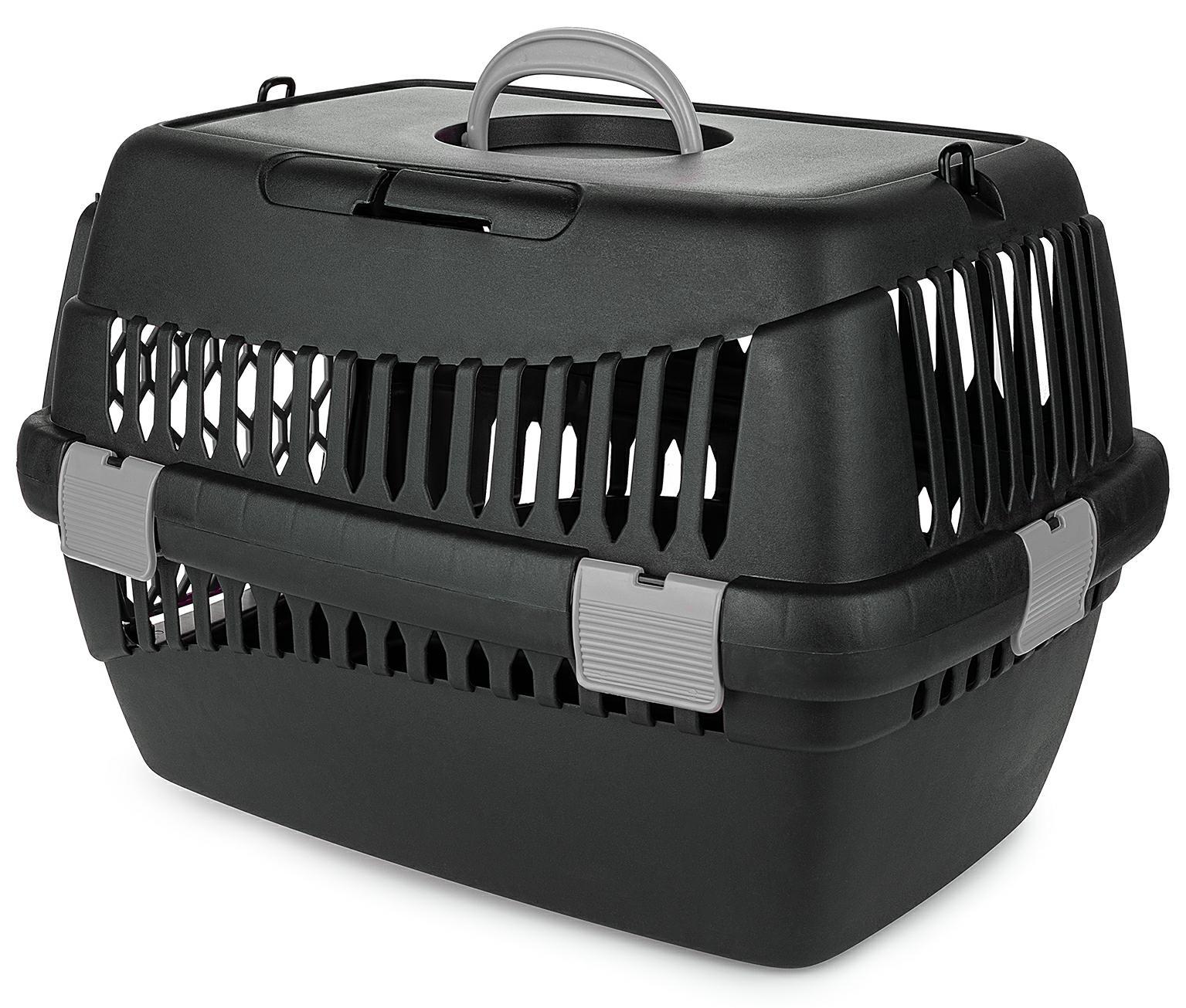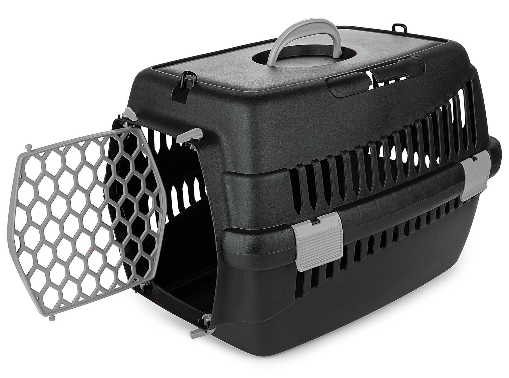 Transporter wyposażony jest w wygodną rączkę oraz opcjonalne mocowania do paska na ramię, co ułatwia jego przenoszenie. Wnętrze oferuje dużo miejsca, a otwory wentylacyjne oraz krata zapewniają odpowiednią cyrkulację powietrza, co jest istotne dla komfortu zwierzęcia.