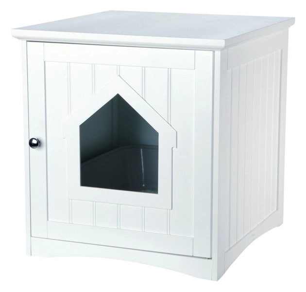 Zabudowanie kuwety jest nie tylko sposobem na jej ukrycie, ale też zahamowanie rozsypywania na podłogę zanieczyszczonego żwirku.