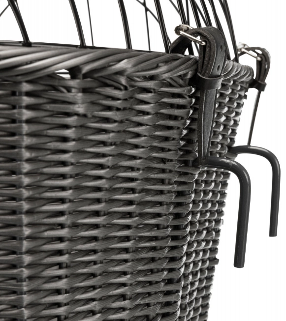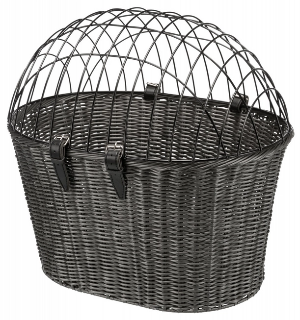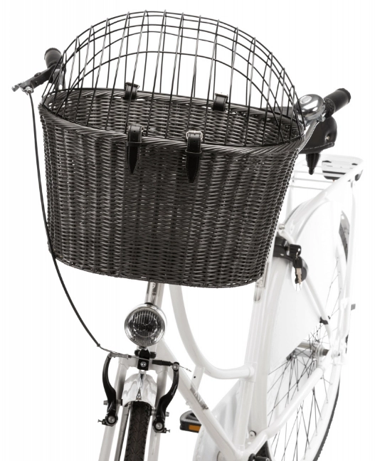 Transporter umożliwiający wspólne wycieczki rowerowe z pupilem. Za pomocą skórzanych pasków, na górę można umieścić druciane okratowanie malowane proszkowo w celu zabezpieczenia Pupila. Poręczny i przestronny kosz wiklinowy na kierownicę roweru dla małych psów oraz kotów do 5 kg. Kosz w kolorze antracytowym z odpinaną, ocynkowaną kratką drucianą, pokrytą plastikiem. Jest wyjątkowo łatwy do zawieszenia kierownicy roweru za pomocą dwóch uchwytów przykręcanych do kierownicy. Kosz zawiera wyjmowaną poduszkę zapewniającą komfort podróży dla pupila.