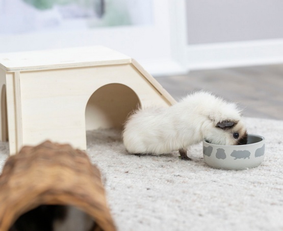 Ceramiczna miska o pojemności 250 ml, idealna dla świnki morskiej. Doskonale nadaje się zarówno na pokarm, jak i wodę. Dzięki materiałowi ceramicznemu, miska jest łatwa do czyszczenia i można ją myć w zmywarce, co zapewnia wygodę użytkowania.