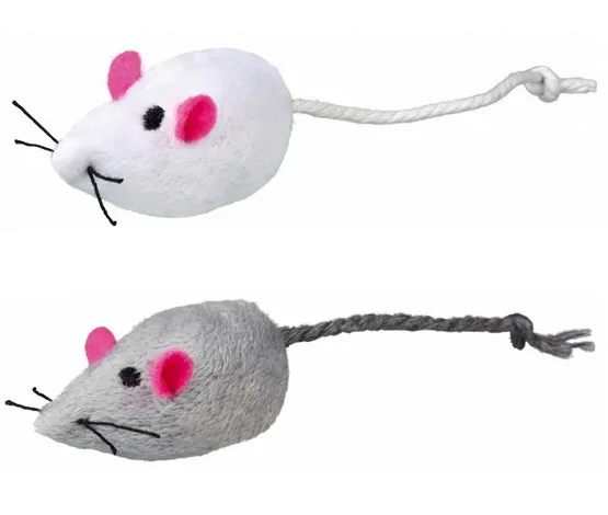 Myszki sprzedawane są w opakowaniach po 2 sztuki, co pozwala na łatwe uzupełnienie kociej zabawy.