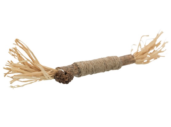 Trixie Patyk Matatabi z frędzlami to doskonała zabawka dla Twojego kota, która zapewni mu wiele godzin radości. Zestaw składa się z patyczka o długości 24 cm, owoców matatabi, jutowego sznurka oraz frędzli z rafii. Podczas zabawy koty nie tylko się rozbawią, ale także wspomogą higienę swoich zębów przez gryzienie.