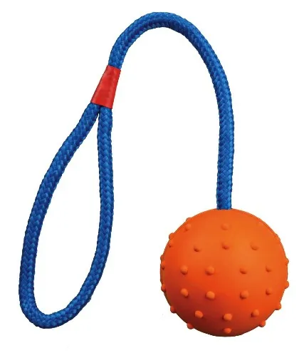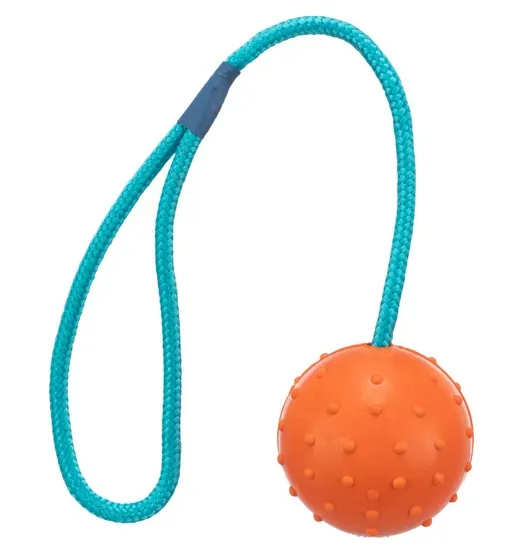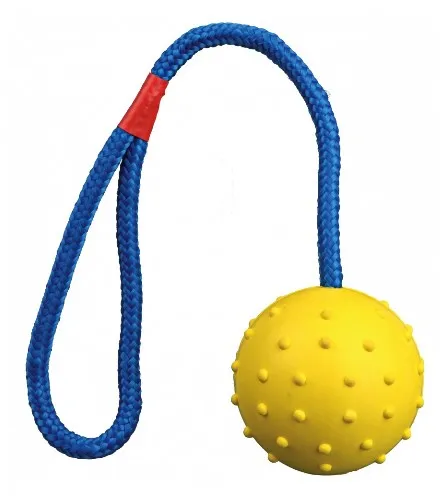 Zabawka Trixie dla psa to piłka wykonana z twardej gumy, która jest idealna do gryzienia i aportowania. Dzięki dołączonemu sznurkowi z pętelką, jest łatwa do rzucania oraz świetnie nadaje się do zabaw siłowych i przeciągania. Dostępna w różnych kolorach, które wysyłamy losowo.