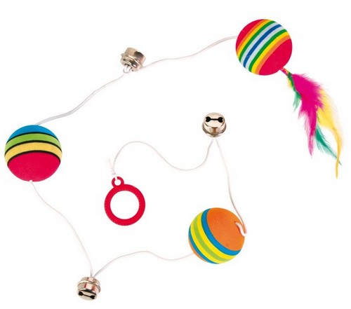Zabawka dla kotów w formie kolorowych piłeczek połączonych z piórkiem i dzwoneczkami to idealny sposób na aktywność Twojego pupila. Dzięki okrągłemu uchwytowi, łatwo możesz poruszać zabawką, co dodatkowo zachęca kota do zabawy.