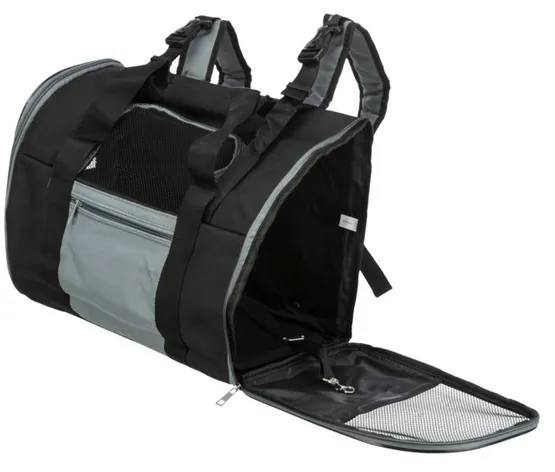 To idealne rozwiązanie dla właścicieli małych psów. Plecak wykonany z trwałego poliestru zapewnia komfort i bezpieczeństwo podczas podróży. Otwierany z przodu i boku, umożliwia łatwe umieszczanie pupila w środku. Dodatkowa kieszeń na przekąski pozwala na zabranie ulubionych smakołyków.