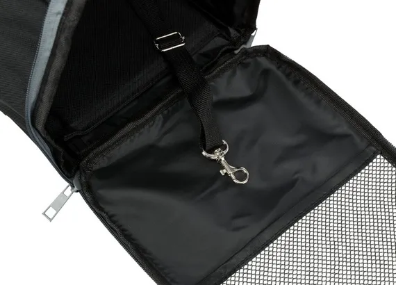 Regulowane szelki gwarantują odpowiednie dopasowanie, a krótka smyczka zapobiega wyskakiwaniu psa na zewnątrz. Plecak jest także łatwy do czyszczenia, co ułatwia jego użytkowanie.