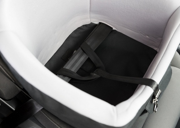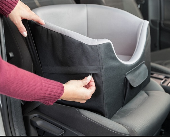 Uwaga: Siedzisko i zintegrowana krótka smycz powinny być mocowane do siedzenia za pomocą pasa samochodowego. Aby zapewnić bezpieczeństwo psu, należy używać specjalnej uprzęży bezpieczeństwa, która będzie przymocowana do zintegrowanej krótkiej smyczy.