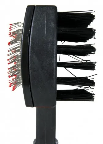 Szczotka dwustronna Trixie to idealne narzędzie do pielęgnacji sierści Twojego pupila. Dzięki antypoślizgowemu uchwytowi, czesanie staje się łatwe i komfortowe. Jedna strona szczotki wyposażona jest w bezpieczne druty, które skutecznie rozczesują podszerstek, podczas gdy druga strona z sztucznym włosiem wygładza sierść, nadając jej zdrowy wygląd.