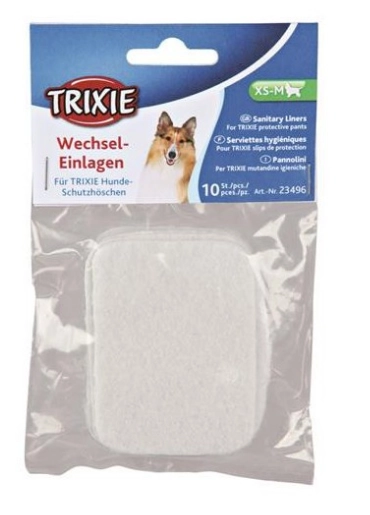 Trixie Wkłady Do Majtek Ochronnych Dla Suczki XS-M 10szt to praktyczne rozwiązanie higieniczne dla właścicieli niewysterylizowanych suczek. Dzięki tym wkładkom możesz zadbać o czystość majtek dla psa podczas cieczki. Produkt charakteryzuje się wysoką chłonnością, co zapewnia komfort noszenia zarówno psu, jak i jego właścicielowi.