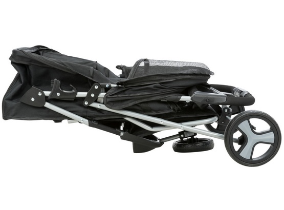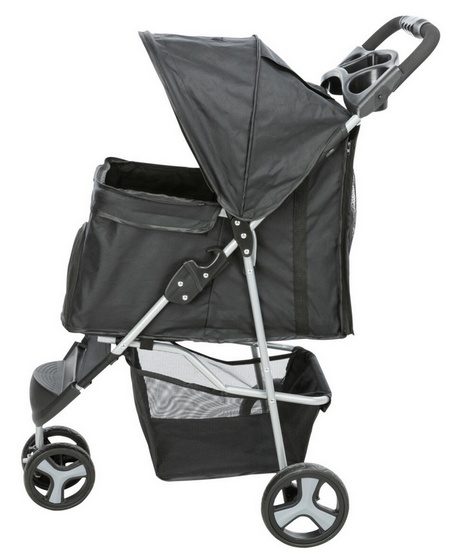 Wyściełany uchwyt i dodatkowe przegródki do przechowywania sprawiają, że korzystanie z wózka jest wygodne. Wymiary wózka to 47 x 100 x 80 cm, a jego konstrukcja jest przystosowana do zwierząt o wadze do 11 kg.