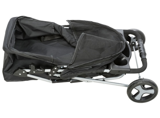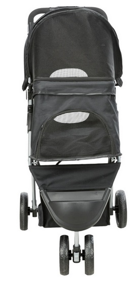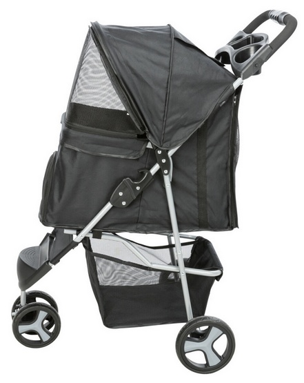 Ten wózek jest szczególnie polecany dla starych, chorych lub płochliwych psów oraz młodych kotów. Umożliwia wygodne wchodzenie i wychodzenie dzięki dużym tylnym drzwiom. Można go częściowo lub całkowicie zamknąć za pomocą suwaków, a siatkowe wkładki zapewniają odpowiednią wentylację.