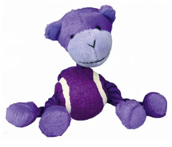 Oferujemy zabawkę w kształcie zwierzątka, wykonaną z sznura i piłki tenisowej. To doskonała atrakcja dla Twojego pupila, która zachęca do zabawy i aktywności. Zabawka ma długość 16 cm i można ją prać w temperaturze 30 stopni C, co ułatwia utrzymanie jej w czystości.
