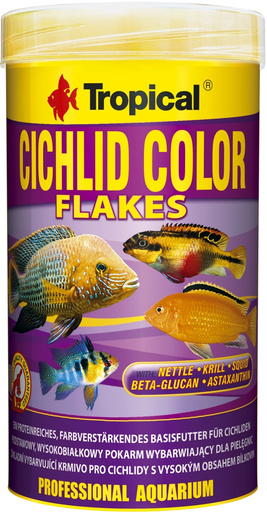 Cichlid Color to podstawowy pokarm z wysoką zawartością białka, przeznaczony do codziennego karmienia wszystkożernych i mięsożernych pielęgnic - w tym wielu gatunków pyszczaków z jeziora Malawi. Zawarta w pokarmie pokrzywa reguluje przemianę materii oraz wspomaga pracę wątroby i trzustki.