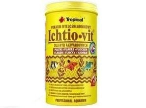 Ichtio-Vit to uniwersalny pokarm, który doskonale sprawdza się w akwariach wielogatunkowych. Można nim codziennie karmić większość popularnych gatunków ryb wszystkożernych. Do jego produkcji zostały użyte wyselekcjonowane składniki pochodzenia zwierzęcego i roślinnego.