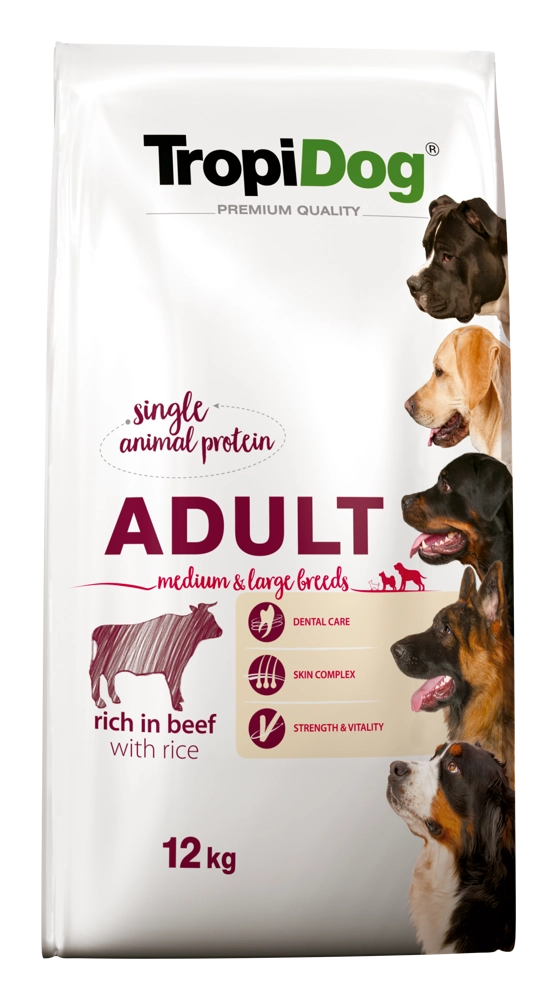 Tropidog Premium Adult Medium & Large Breed Wołowina Z Ryżem 12kg • Kod: 5900469570777 • Kategoria: Sucha karma dla psów ( pozostałe marki ). Zamów online