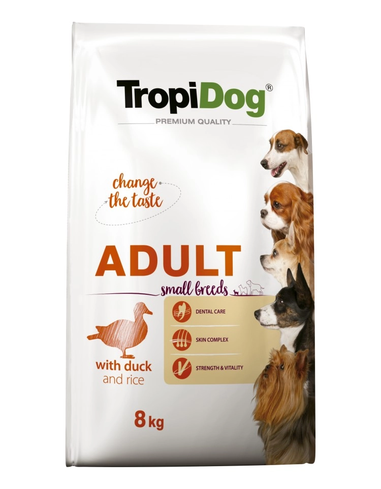 Tropidog Premium Adult Small Breeds Z Kaczką I Ryżem 8kg • Kod: 5900469570272 • Kategoria: Sucha karma dla psów ( pozostałe marki ). Dodaj do koszyka już teraz