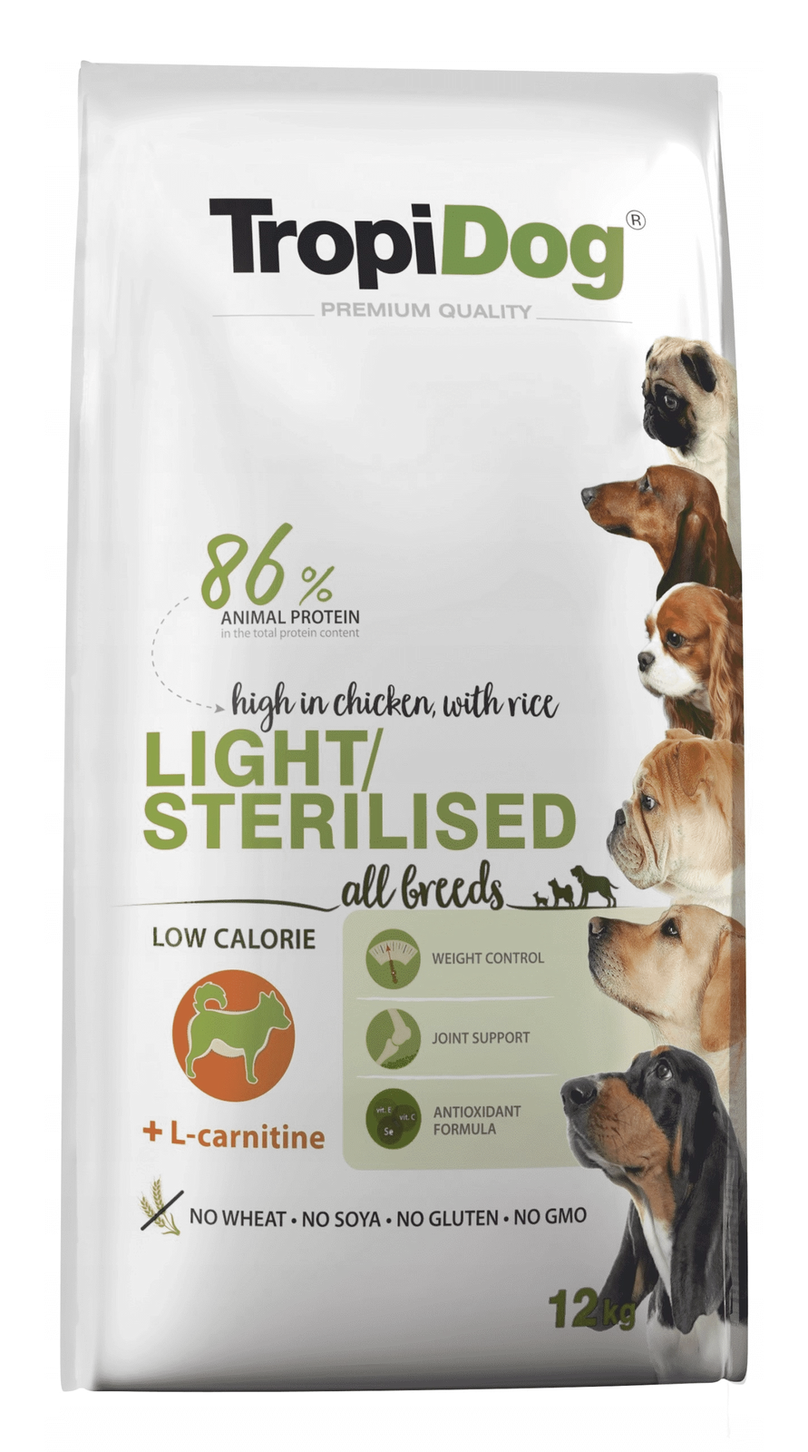 Tropidog Premium Light Sterilised Kurczak Z Ryżem 12kg
