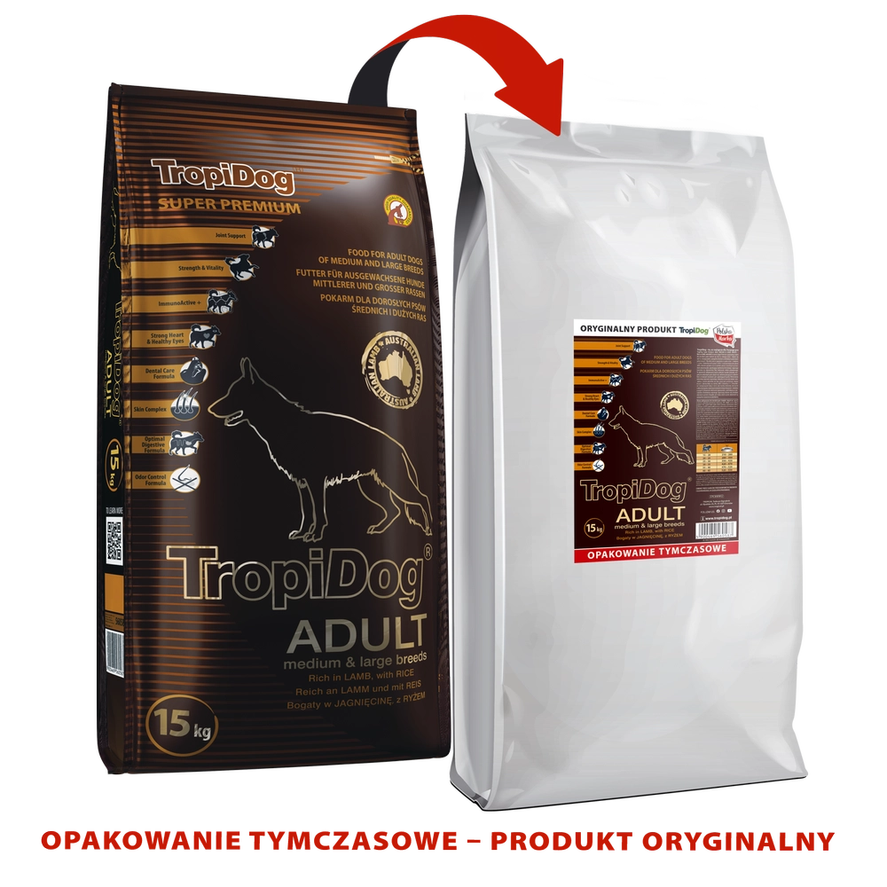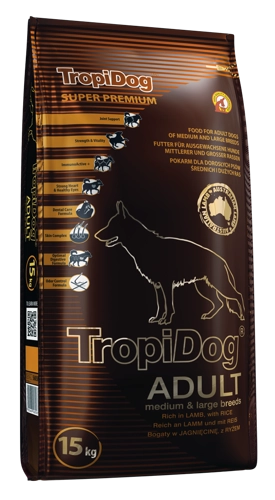 Tropidog Super Premium Adult Medium & Large Breed Jagnięcina Z Ryżem 15kg
