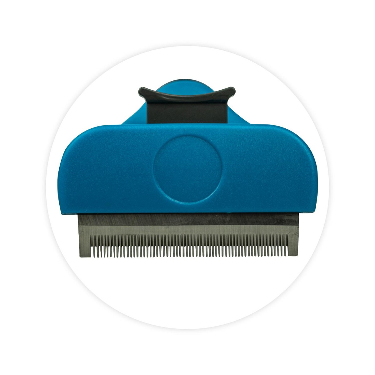 Produkt został wyposażony w mechanizm, który ułatwia usuwanie sierści z ząbków, co zwiększa komfort użytkowania. Gumowa, antypoślizgowa rączka zapewnia pewny chwyt, co dodatkowo podnosi wygodę pracy.