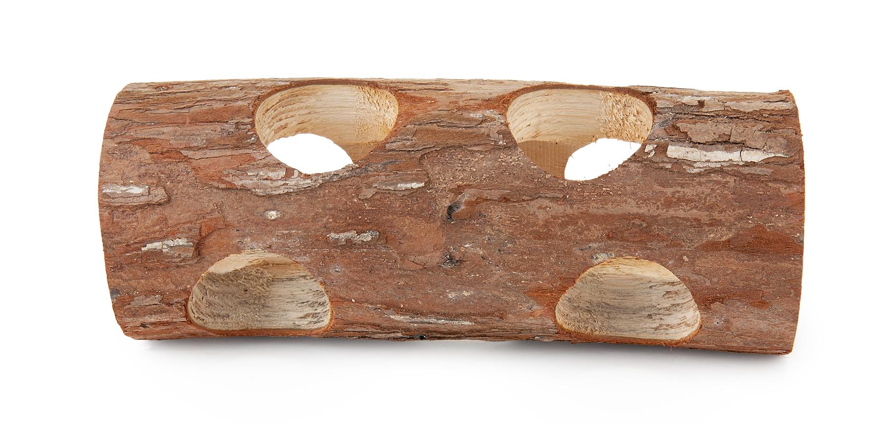 Oferujemy tunel wykonany z drewna, który stanowi doskonałe schronienie oraz naturalny gryzak dla Twojego gryzonia. Dzięki licznym otworom, przestrzeń życiowa zwierzęcia staje się znacznie ciekawsza. Gryzonie uwielbiają kryjówki i ciasne przejścia, a ten tunel zachęca do aktywności.