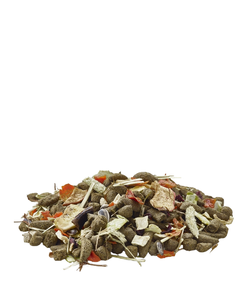 W składzie znajdują się smaczne warzywa, takie jak pasternak czy marchewka, które zapewniają witaminy i minerały. Wysoka zawartość błonnika wspiera prawidłowe trawienie. Twarde elementy karmy pomagają w naturalnym ścieraniu zębów, co jest istotne dla ich zdrowia.