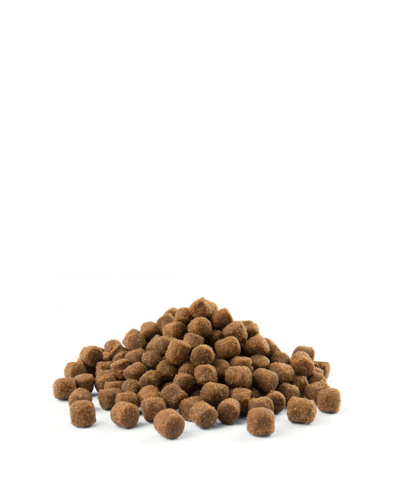 Skład: Kurczak (dehydratyzowany, 35%), ryż (25%), mąka ryżowa, tłuszcz zwierzęcy, włókna roślinne (celuloza 4%, wysłodki buraczane 1%), siemię lniane, olej z łososia, drożdże piwne, minerały, kryl, suszone pełne jaja, FOS (0,5%), MOS (0,1%), lecytyna, algi morskie, glukozamina (500 mg/kg), rozmaryn (16,8 mg/kg), aksamitka, zielona herbata (12 mg/kg).