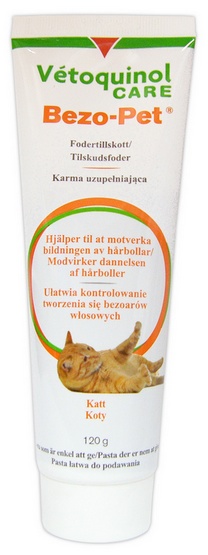 Pasta Vetoquinol Bezo-Pet o wadze 120g to doskonały sposób na dbanie o zdrowie przewodu pokarmowego Twojego kota. Dzięki olejowej bazie, pasta tworzy śliską warstwę, która pomaga w usuwaniu ciał obcych oraz zapobiega powstawaniu bezoarów włosowych. Jest to szczególnie ważne dla kotów długowłosych oraz tych, które nie mają dostępu do naturalnego źródła błonnika.