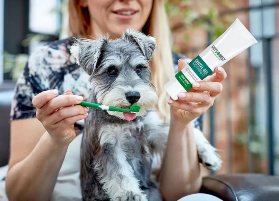 W skład zestawu wchodzi żel dentystyczny Vet’s Best o pojemności 100g oraz trójgłowicowa szczoteczka, idealna dla dorosłych psów. Ten produkt został stworzony przez weterynarzy, aby wspierać higienę jamy ustnej Twojego pupila.