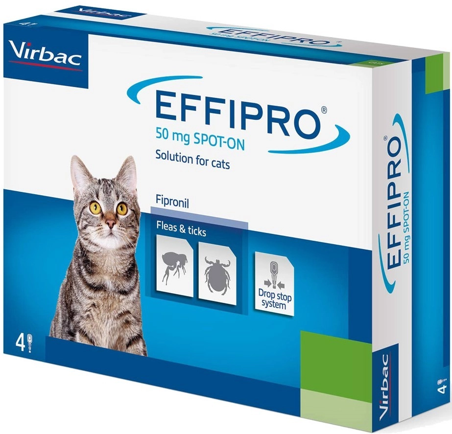 Virbac Effipro Spot-On Dla Kotów 4x0,5ml to skuteczny roztwór do stosowania na skórę, przeznaczony dla kotów powyżej 2 miesiąca życia i ważących więcej niż 1 kg. Dzięki niemu zapewnisz swojemu pupilowi ochronę przed pchłami przez okres do 5 tygodni oraz działanie roztoczobójcze przeciwko kleszczom przez 2 tygodnie.