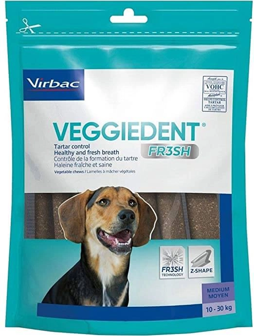 Innowacyjny kształt litery „Z” ułatwia chwytanie gryzaka przez psa, co pozwala na skuteczne ścieranie kamienia nazębnego w obrębie zębów i dziąseł. Codzienne stosowanie gryzaków VEGGIEDENT® FR3SH™ potwierdza skuteczność w redukcji płytki nazębnej i kamienia nazębnego, co zostało udowodnione badaniami naukowymi.