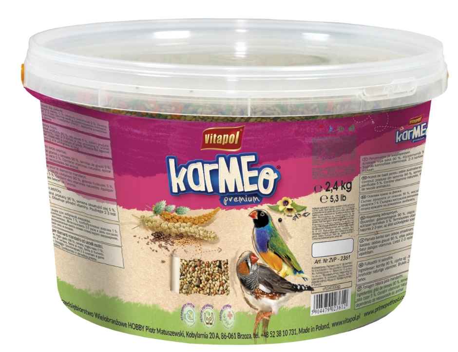 Pokarm ma drobną frakcję składników, co czyni go odpowiednim dla małych dziobów egzotycznych ptaków. Produkt dostępny jest w różnych gramaturach.
