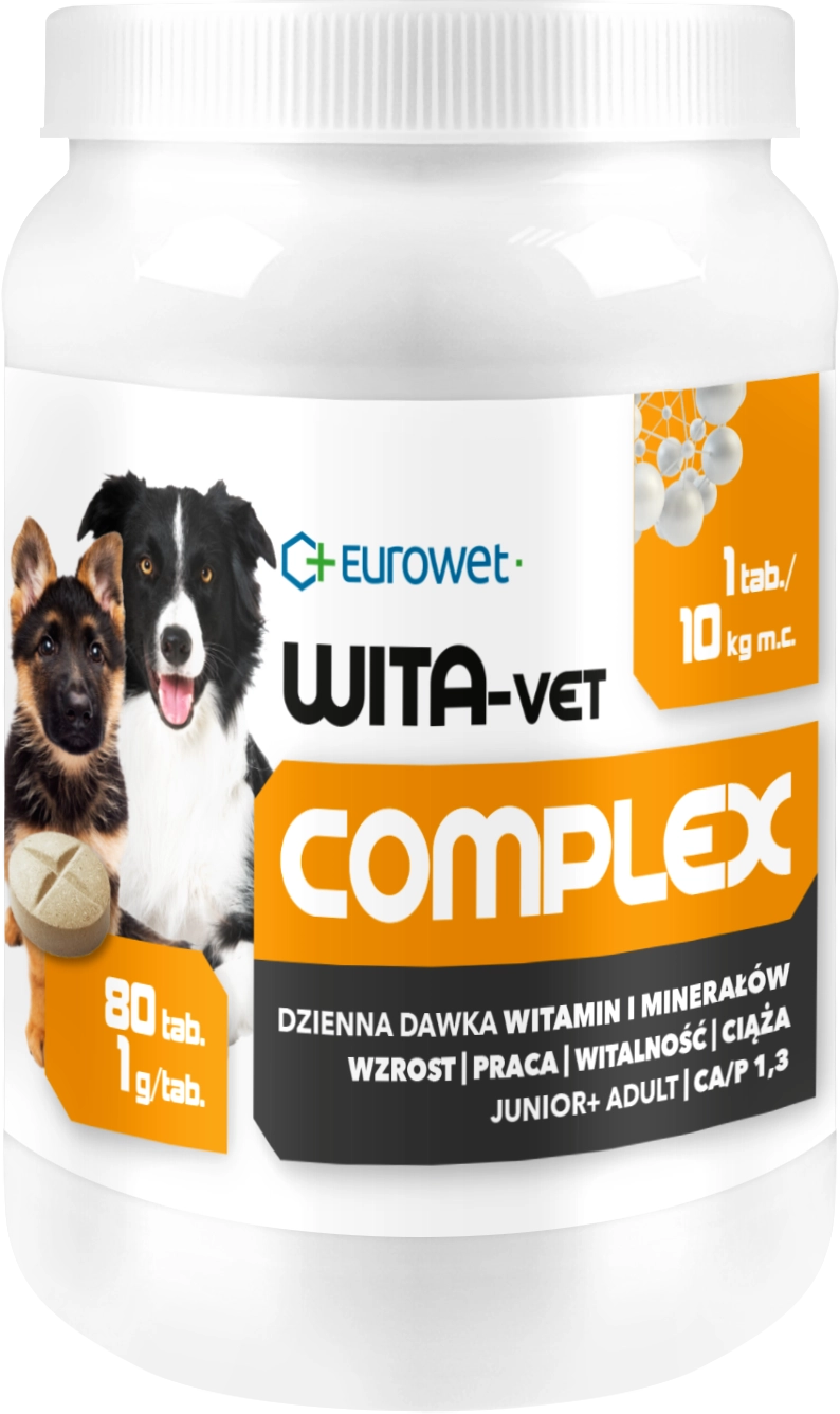 Działanie: Wita-Vet Ca/P=1,3 to smakowite tabletki, które psy chętnie przyjmują jako przysmak. Można je podawać bezpośrednio lub wymieszać z karmą.