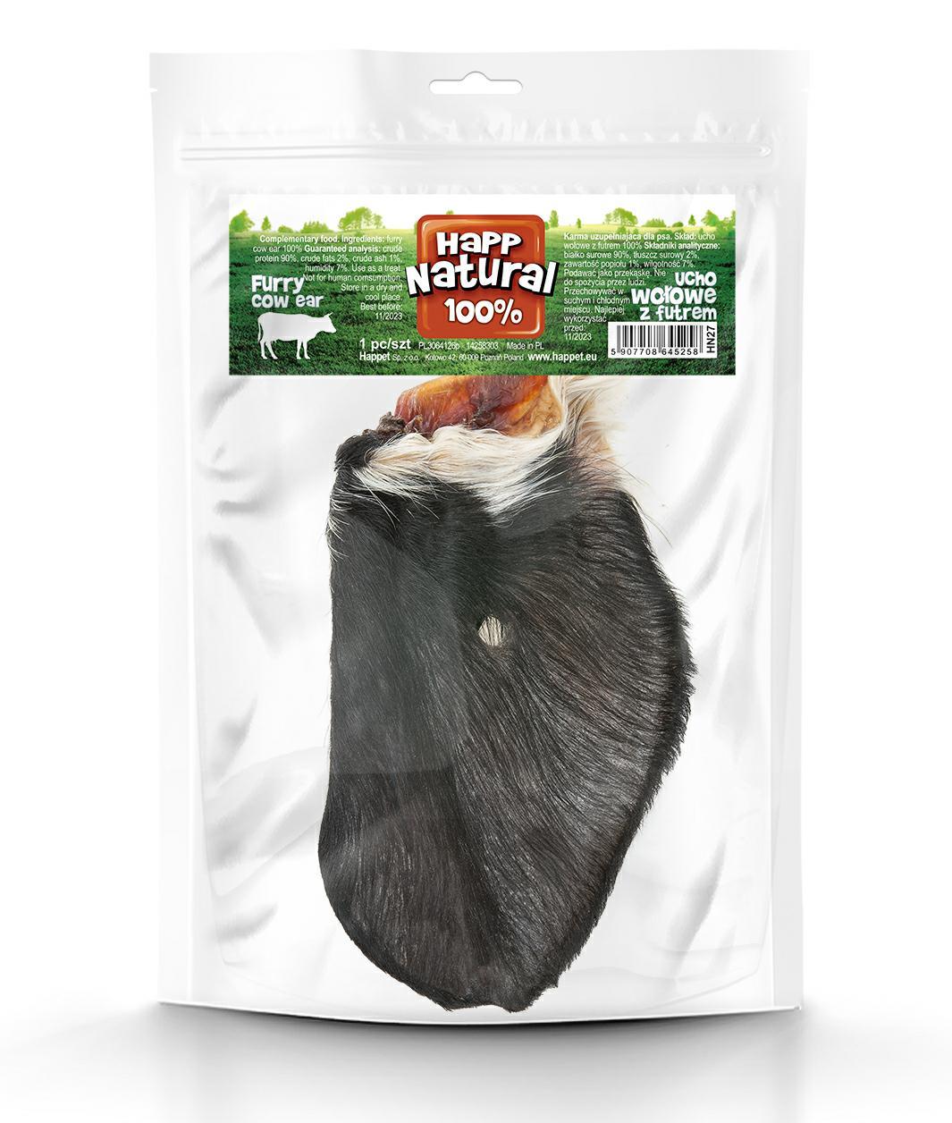 Ucho wołowe z futrem 100% - gryzak naturalny dla psa