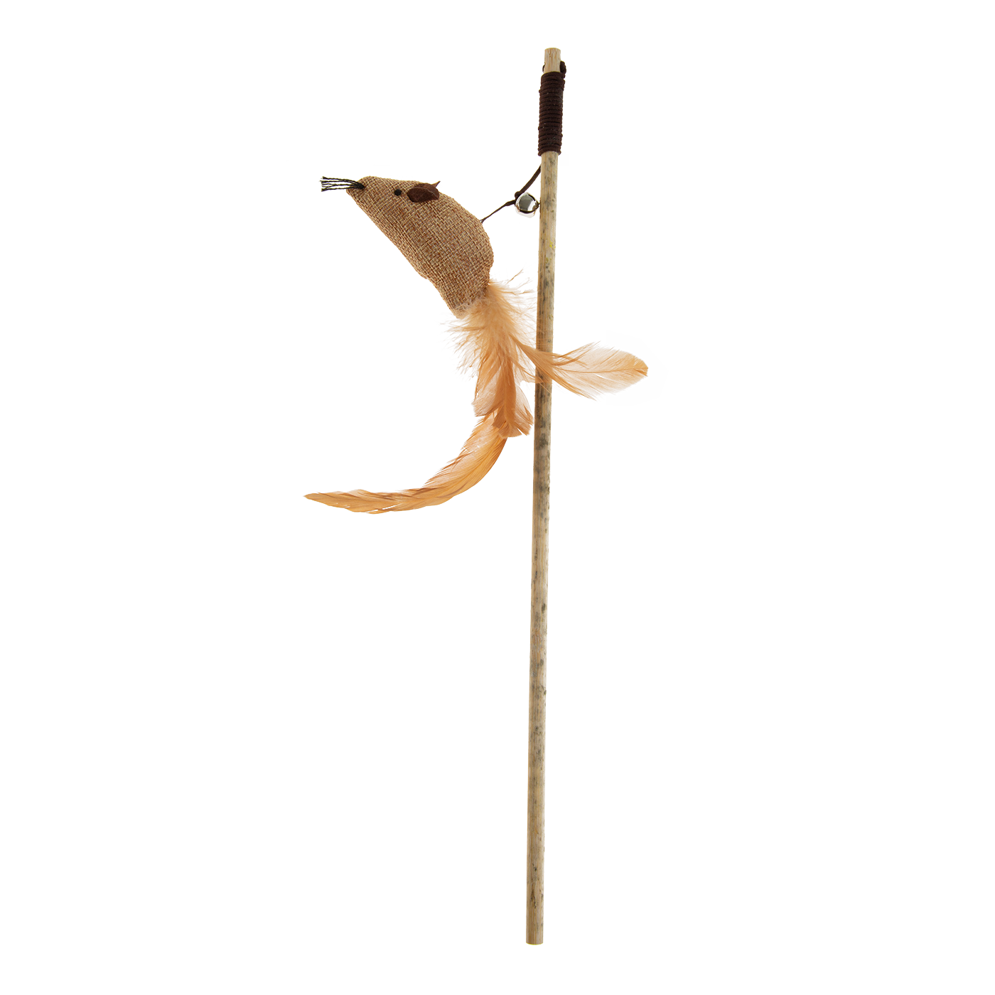 Wędka dla kota z myszą i piórkamiWędka z piórkami i dzwoneczkiem pobudzająca instynkt łowczy Twojego kota. Ulubiona zabawka zakończona tkaninową myszką i ptasimi piórami. Doskonały trening koncentracji i zwinności dla kota. Zabawa i emocje w jednym!!*…