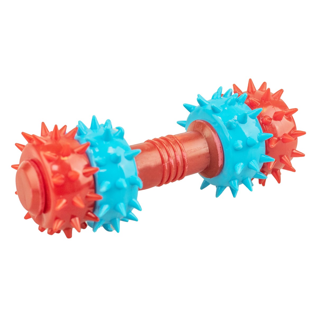 Zabawka wykonana jest z krążków gumowych o różnorodnej twardości i strukturze. Obracające się wypustki pomagają w utrzymaniu dobrego stanu uzębienia psa- doskonale masują dziąsła, czyszczą zęby oraz zapobiegają osadzaniu się kamienia nazębnego. Gryzak jest odpowiedni dla psów w każdym wieku, również szczeniąt. Wymiana uzębienia u szczeniąt (12-14 tydzień życia) jest etapem bardzo nieprzyjemnym– dziąsła bolą i swędzą, a zwierzę usiłuje złagodzić te dolegliwości gryząc różne przedmioty ze swojego otoczenia. Warto zadbać o komfort szczenięcia podsuwając mu zabawkę przynoszącą ulgę- można dodatkowo ją schłodzić.