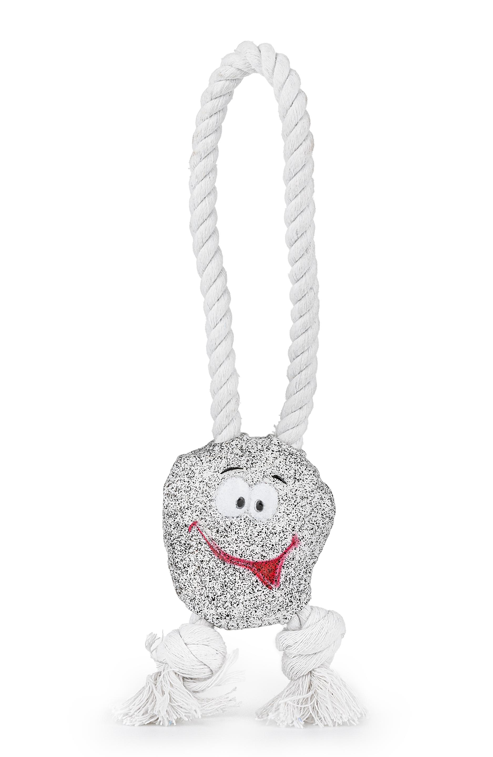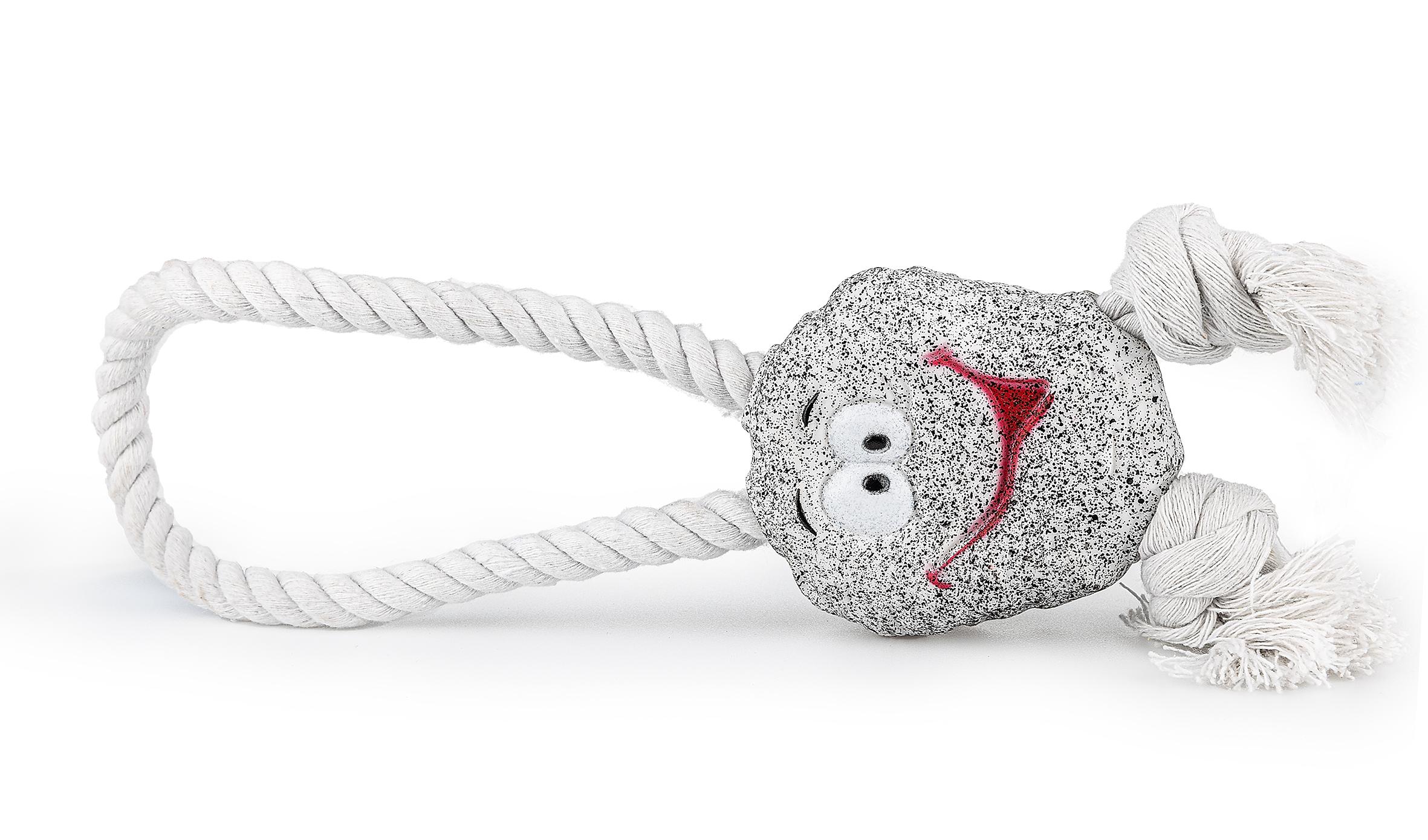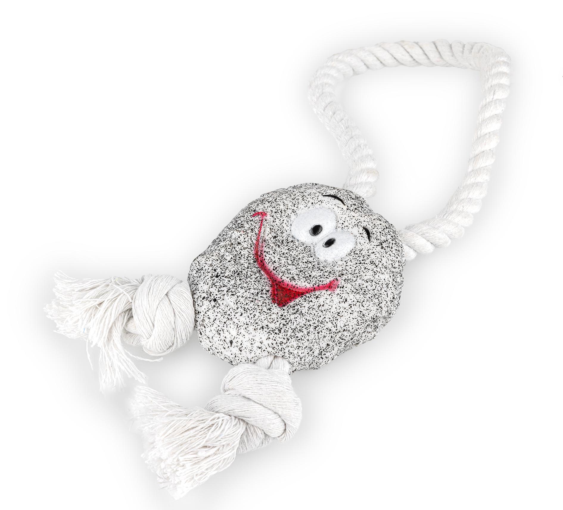 Istnieje wiele różnic pomiędzy człowiekiem a zwierzęciem, ale jedno z pewnością nas łączy- wszyscy się czasem nudzimy. Z tym ponadgatunkowym zjawiskiem możemy sobie poradzić w bardzo prosty sposób, a dokładniej za pomocą zabawy. Piszcząca zabawka w kształcie kamienia ze sznurkiem pozwoli nam na wspólną zabawę z psiakiem w postaci przeciągania lub innych zabaw siłowych. Gdy my mamy się czym zająć, a nuda dopada akurat naszego pupila, zabawka pozwoli mu na długotrwałą zabawę w pojedynkę. Piszczałka umieszczona w środku gumowego kamyka jest elementem stymulującym, dzięki czemu nasz psiak nie straci zainteresowania zbyt szybko. Śmieszny design wyróżnia zabawkę pośród innych produktów.