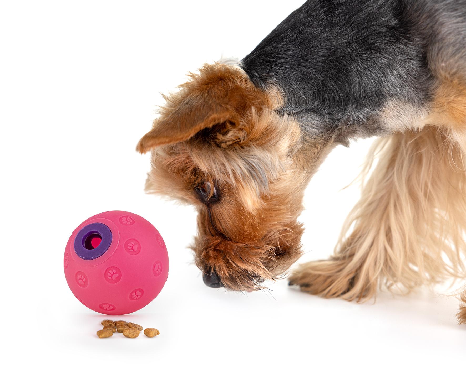 Jak to działa? Do otworu w piłce włóż ulubiony przysmak pupila. Otwór możesz całkowicie zamknąć, tak, żeby zabawka jedynie pachniała smaczkiem, lub pozostawić minimalnie otwarty, żeby ostatecznie po długiej zabawie smaczek wypadł jako nagroda dla pupila.